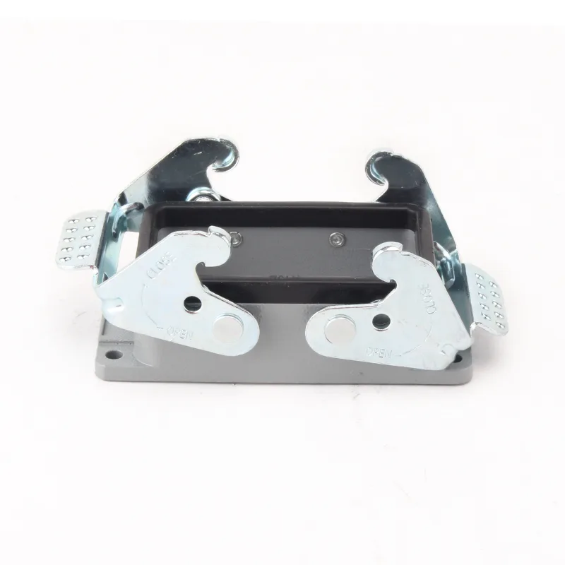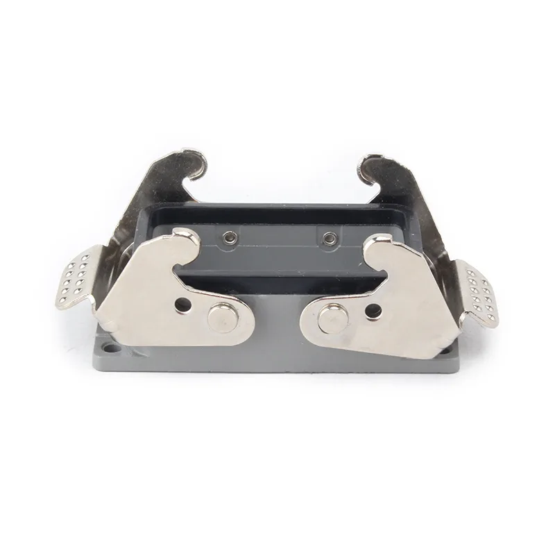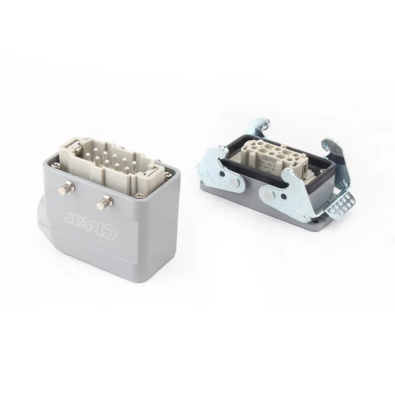 Estos conectores CHTAR AG de 10 pines de alta resistencia están diseñados según un principio modular. Consiste en una carcasa de enchufe hembra, que puede acomodar varias configuraciones de inserción con 10 números de contactos hembra o macho. Está hecha de doble palanca de bloqueo para proteger los conectores internos.