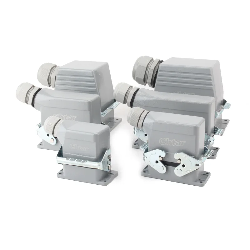 Los duraderos conectores AG de alta resistencia de 24 pines diseñados y producidos por CHTAR son adecuados para conectores HE, HD, HEE, HDD y otros conectores de alta resistencia de 24 pines. El conector está fabricado en aleación de aluminio y recubierto con polvo gris RAL7037. Su corriente de funcionamiento es de 16 A, el voltaje de funcionamiento es de 500 VCA, el rango de temperatura de funcionamiento es de -40 ℃ a +125 ℃ (-40 ℉ a +257 ℉), los ciclos de conexión y desconexión son 500 veces y el grado de protección es IP65.
