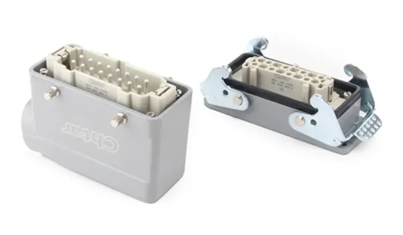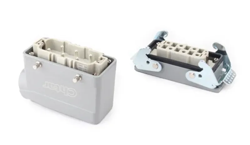 CHTARPuede proporcionar una gama completa de conectores de carcasa de alta resistencia. Hay carcasas que combinan con los conectores de alta resistencia de las series HA, HE, HD, HEE y HDD, etc. También trabajan con diferentes pines, como 3, 4, 5, 6, 10, 16, 24, 32 y 48, etc. La fábrica puede suministrar diferentes conexiones de dirección de cable.