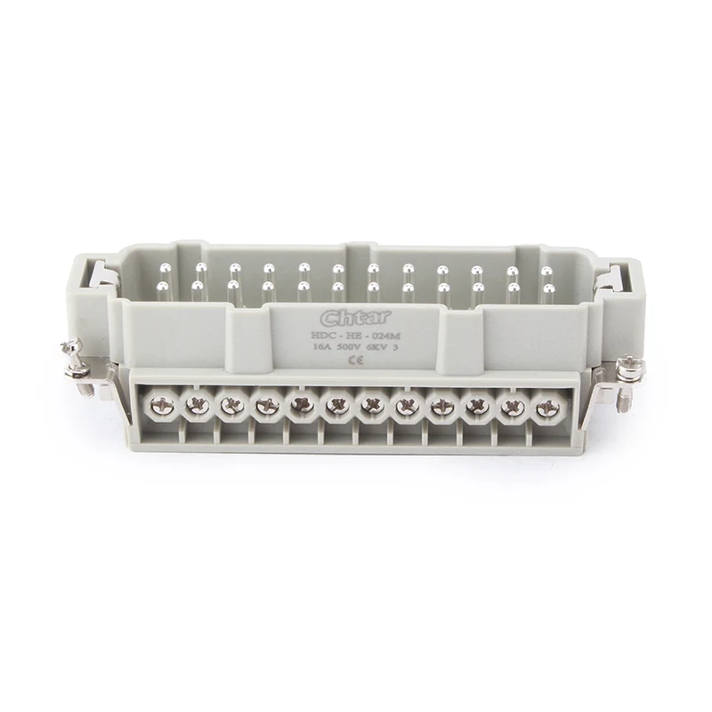 Este duradero conector enchufable de alta resistencia HE-024-F y HE-024-M de 16 A de CHTAR viene con conectores hembra y macho. Es compatible con el conector de carcasa resistente H24B de HDC-HE-024. Está hecho de una carcasa de PC resistente y pasadores de latón chapados en plata. Los pines chapados en plata proporcionan una excelente conductividad y ventajas operativas para los conectores M/F de inserción de 24 pines de alta resistencia. ¡Hacemos negocios con personas de todo el mundo y estamos familiarizados con las regulaciones locales!