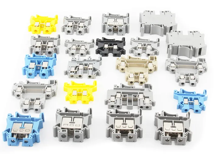 Nuestra fábrica ofrece personalización del color de la carcasa OEM para diferentes posiciones y funciones. Los últimos bloques de terminales de carril DIN con tornillos están disponibles en colores estándar como gris, amarillo, rojo, negro, verde, marrón y naranja para adaptarse a las diversas necesidades del mercado.